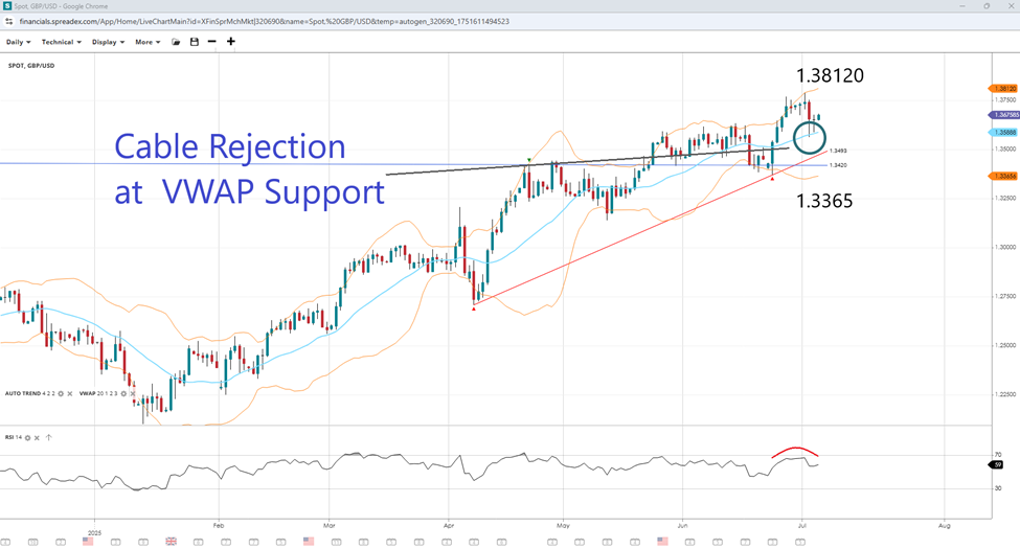Cable has wobbled recently due to concerns over the potential replacement of Reeves, a fiscal conservative. Despite assurances from Starmer, markets remain unsettled after the government's U-turn on pension spending and warnings from the OBR about potential economic growth downgrades. Despite fuelling calls for measures to curb borrowing costs, potentially forcing Reeves to raise taxes in the Autumn spending plan, economic growth and lower interest rates could alleviate concerns and support the pound's trajectory.