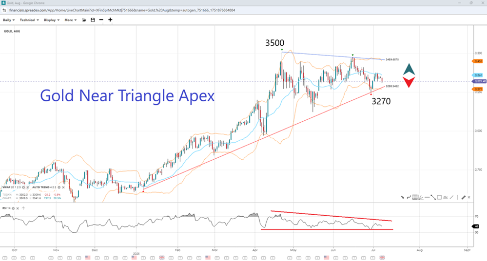A stronger dollar amid the passing of the US budget and a reprieve in the trade deal deadline weighed on gold prices. President Trump announced that multiple trade deals were being finalised, though he extended the tariff deadline to 1 August as uncertainty over which countries these were and the new rates remained. While some progress has been made with the UK and Vietnam, the US aims to accelerate more agreements by applying "maximum pressure". A new 10% tariff policy for countries with "anti-American policies" was unveiled, while the EU faces potential tariffs of up to 50%, but making "good progress".