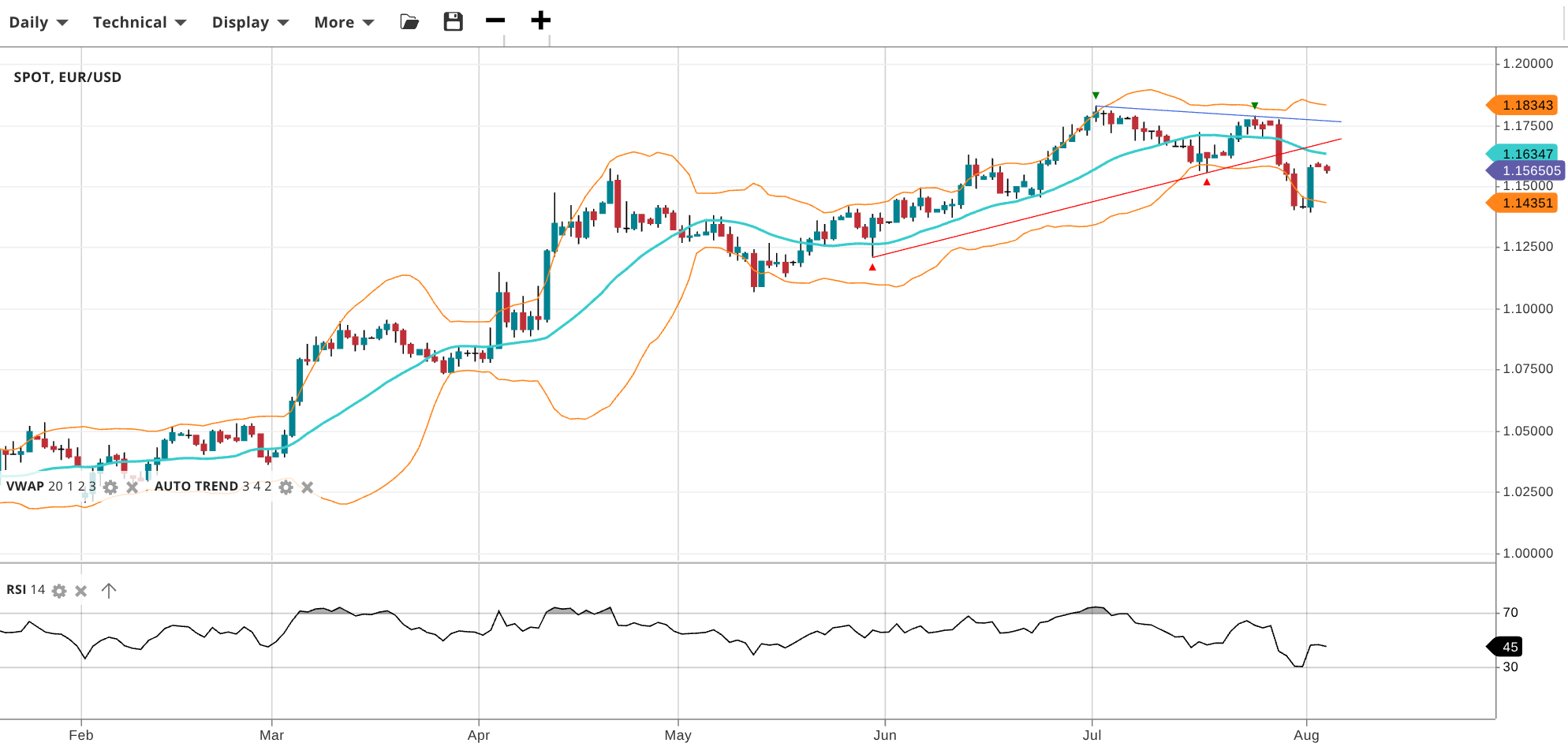 NOTE: These charts use the ‘Pro Trading Tools’ available on the SpreadEx trading platform. To use them, log in to your and click ‘Technical’ from the menu on any chart.