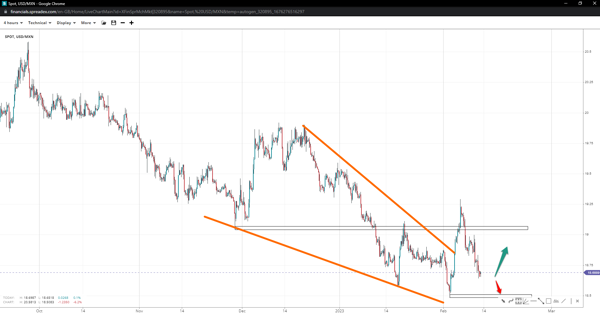 USD/MXN has formed a wedge pattern down at 18.50, but the bounce seen since has been nearly fully reversed. Losing the floor will open the door to the 18.00 handle, but if we see another momentum shift, the bulls must recapture 19.05 to support the current reversal at play.