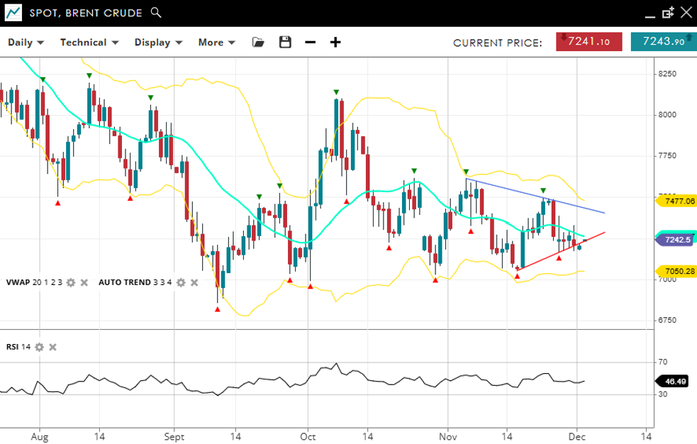 | Brent Crude | Neutral | Consolidation | 7242 | 7250 | 7050 | 7477 | 46 |