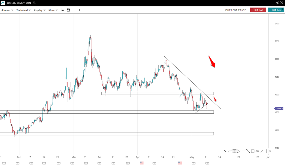 Gold has been posting lower lows and highs signalling that the trend is in a clear downward movement. The price succeeded to break and close below the trendline which shows that the sellers are still in control of the market. Further movement to the downside is possible in the coming hours toward the 1850 mark.
