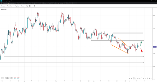 After failing to get through 1940/oz, gold remained in the post-wedge completion stage, but prices have not succumbed below 1900/oz. If bulls reclaim the short-term resistance, it might clear the path to 1950/oz but unlikely 1980/oz, whereas failing to hold the bottom opens up  1890/oz and 1865/oz.