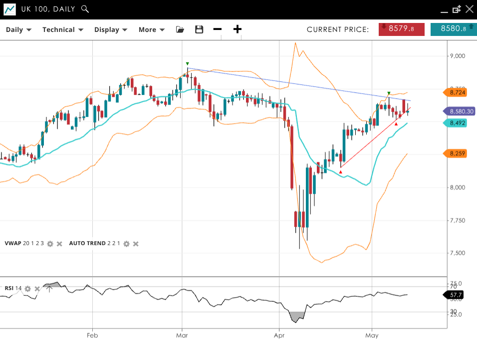 NOTE: These charts use the ‘Pro Trading Tools’ available on the SpreadEx trading platform. To use them, log in to your and click ‘Technical’ from the menu on any chart.