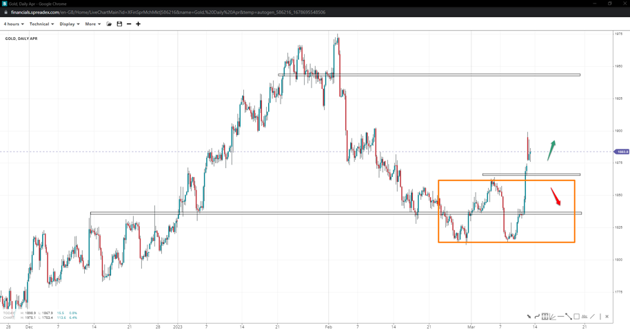 The gold price had turned sideways between 1864 and 1813 but broke higher toward the 1900 handle. Cracking the ceiling might provoke further bets towards 1942, whereas, on the other side, 1865 and 1835 are significant supports.