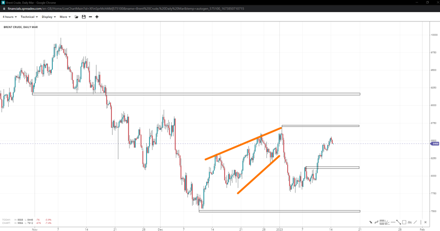 Brent oil regained control of its falling price and could have formed a leading wedge. Recapturing 87.20 could open the door to 91.50 unless we get a double-top formation. This will increase the chance of a channel and could trigger a selloff to 81.50 and the bottom of 75.00.