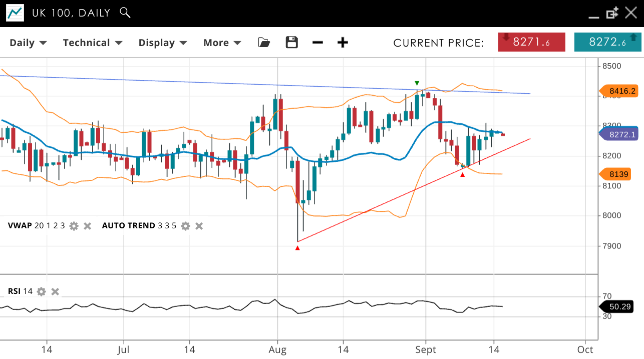 | UK 100 | Neutral | Consolidation | 8272 | 8275 | 8139 | 8416 | 50 |