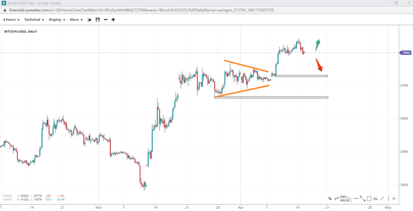 Bitcoin price has been trending higher, with buying momentum rising after the triangle breakout, resulting in a takeover of the 30k handle. However, the measured-move high of 30800 has already been reached, and traders might start unloading some of their positions towards 28360 if not 26550. If the bulls manage to push prices above the major support (now resistance) of 32960, BTC could be in a bull market.
