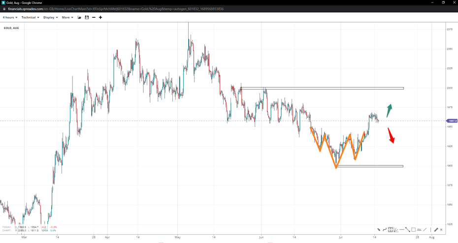 Gold appears in an impulse move currently at correction, making $1943/oz all more important. Turning back up might see an attempt at 2k, with deeper pullbacks exposing the $1900/oz handle unless $1910/oz is part of an inverse H&S and holds firm.