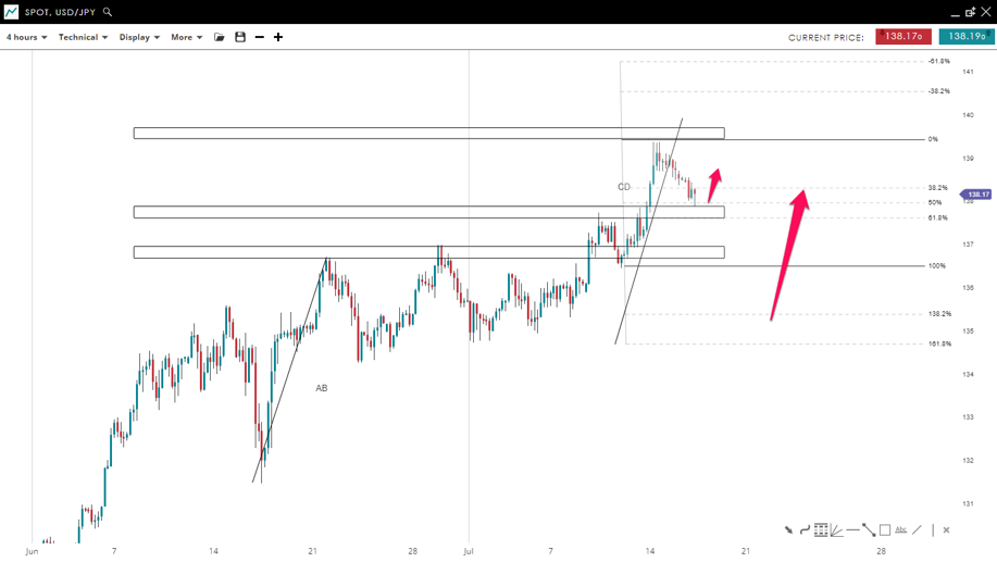 The price of “USD/JPY” is still in an upward movement where the price is currently retracing 50% of its prior upswing where there is also support from the previous peak around 138. If more buyers join the up trend around this area, the market could test and break the 139 mark in the coming days.
