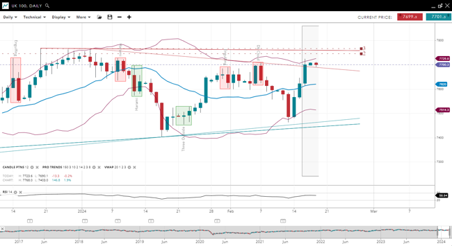 | UK 100 | 7700.3 | Neutral | Impulsive | 7620 | 7514.3 | 7725.8 | 58 |
