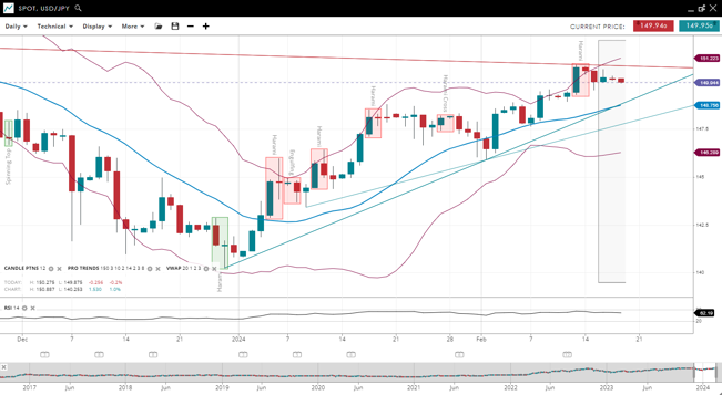 | USD/JPY | 149.94 | Bullish | Impulsive | 146.28 | 146.52 | 151.22 | 62 |