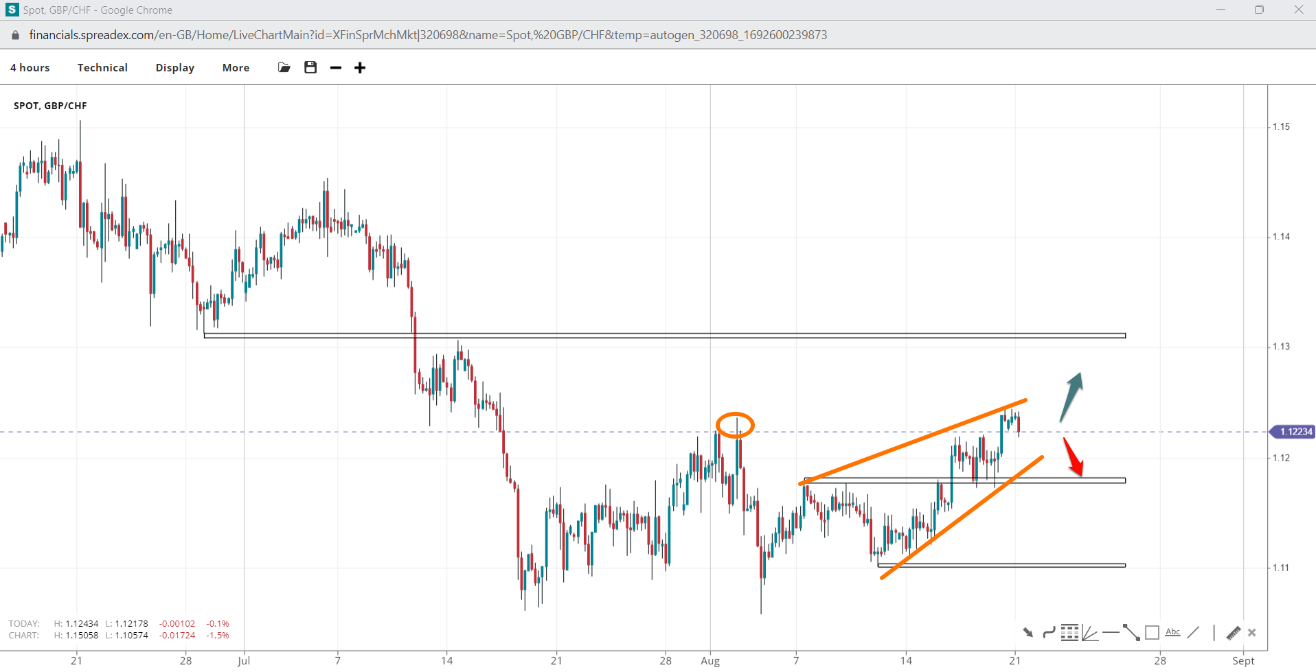 The double top formation on USD/CHF might have put the top in in the context of a wedge pattern. If prices ease under 0.8744, it may clear the path to the round 0.87 support. Otherwise, a fresh spike upwards might provoke a move to 0.89, invalidating the wedge and potentially experiencing further ascends.
