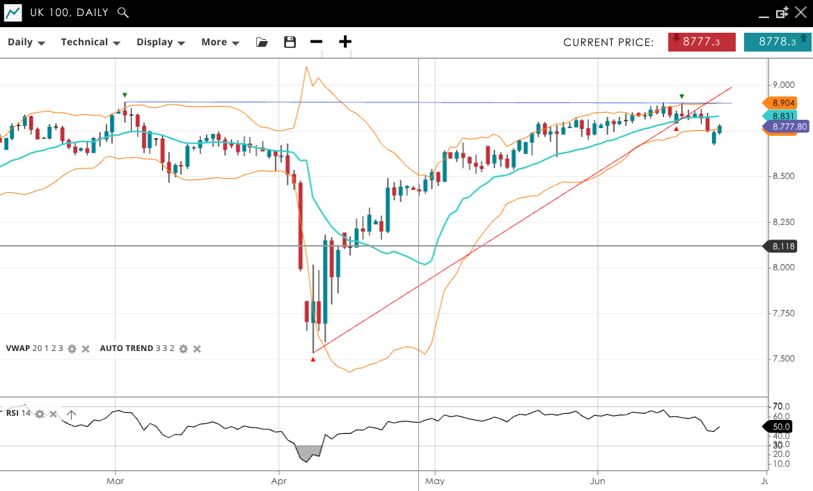 NOTE: These charts use the ‘Pro Trading Tools’ available on the SpreadEx trading platform. To use them, log in to your and click ‘Technical’ from the menu on any chart.