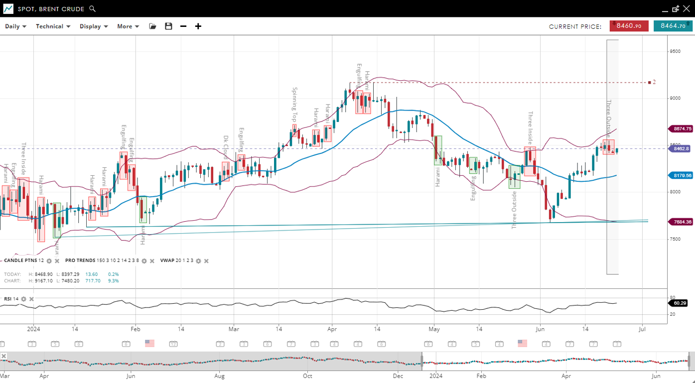 | Brent Crude | Bullish | Corrective | 84.62 | 81.79 | 76.84 | 84.62 | 60 |