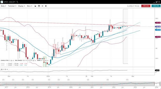 | USD/JPY | 150.44 | Bullish | Impulsive | 149.64 | 147.87 | 151.41 | 64 |