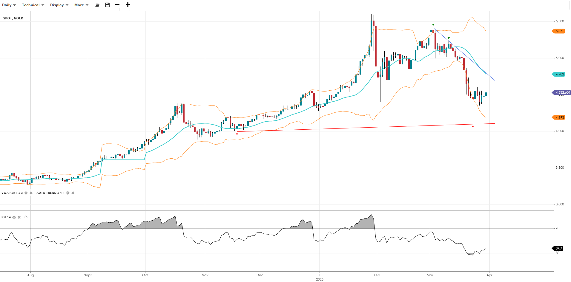 | Gold | Bearish | Impulsive | 4,533 | 4,782 | 4,193 | 5,371 | 38 |
