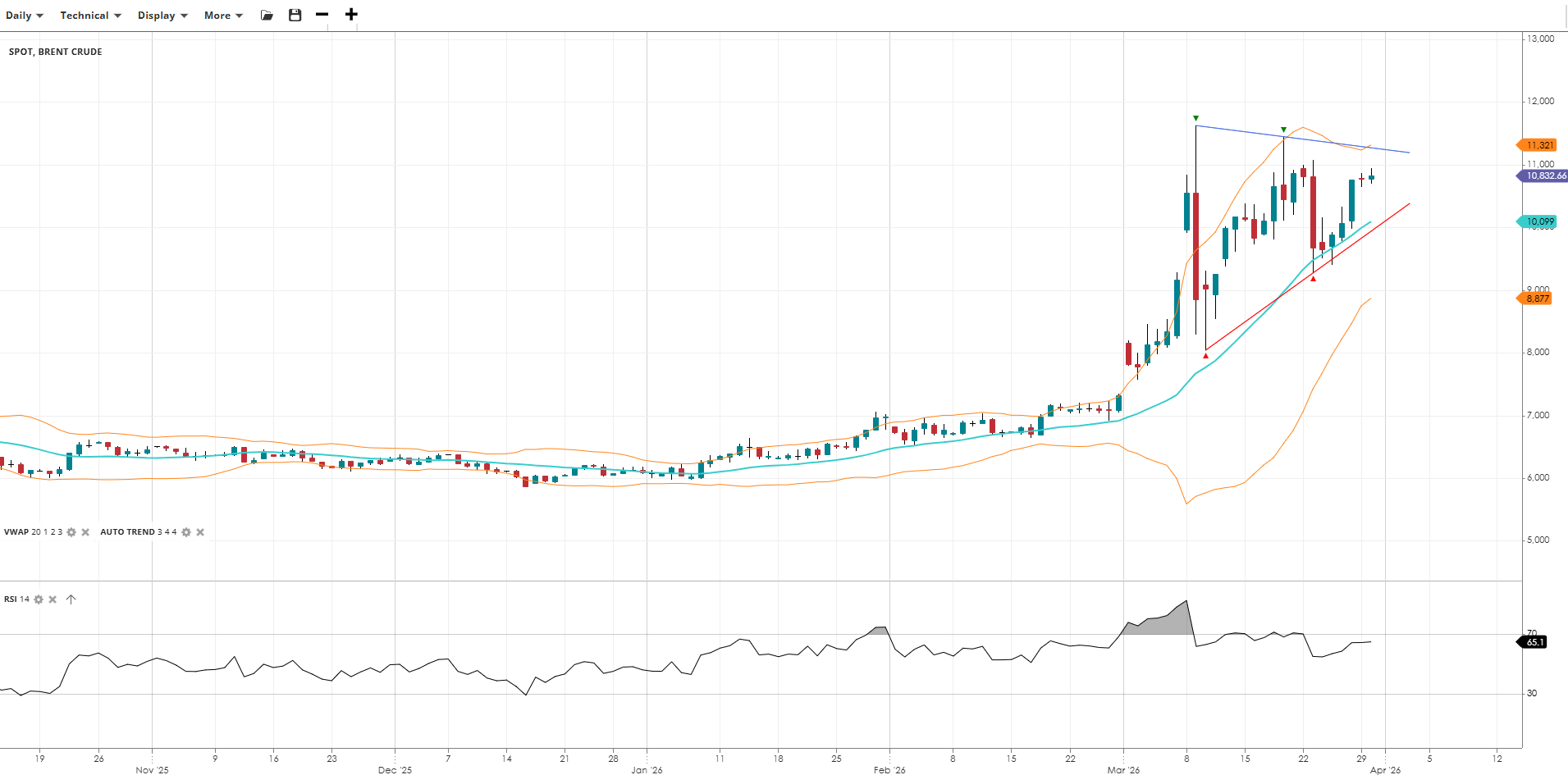 | Brent Crude | Bullish | Pullback | 10,833 | 10,099 | 8,877 | 11,321 | 65 |